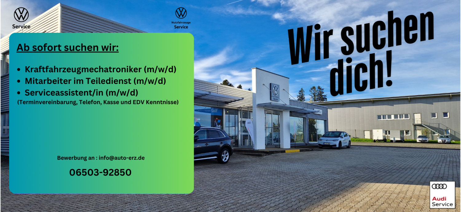 Wir bei Auto-Erz sind seit über 50 Jahren Ihr Volkswagen- und Audi Partner im Hochwald.
